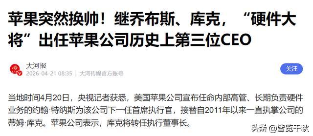 苹果换帅,从来不是简单的人事更替。